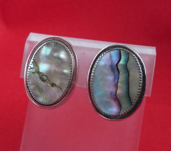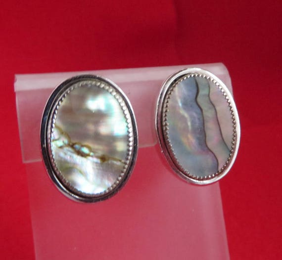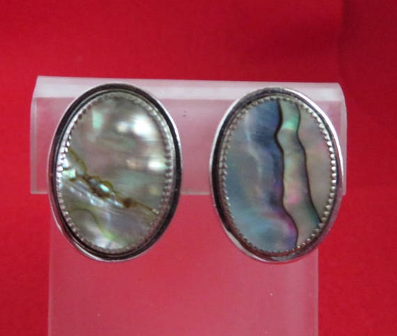 15% OFF coupon on Whiting and Davis Abalone Earrings, Vintage Silvertone Oval Designer Signed Clip on Earrings by LeesVintageJewels