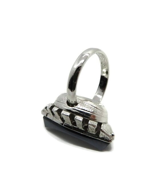 15% OFF coupon on Whiting & Davis Hematite Ring, Vintage Black Glass Ring, Black Designer Ring, Silvertone Ring, Signed Whiting and Davis Jewelry, Size 6 by LeesVintageJewels