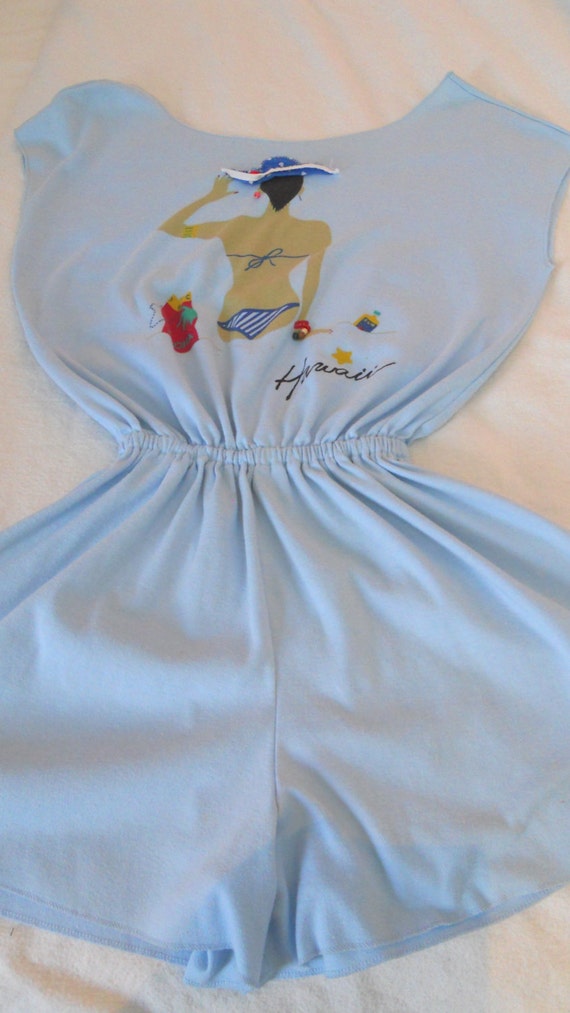 15% OFF coupon on Woman's Hawaiian Romper, Vintage 1986 Blue Playsuit, Beach Cover Up , Size Small by LeesVintageJewels