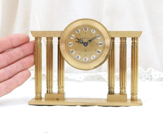 20% OFF coupon on Working Vintage Mid Century Gold 1950s Rare French Mechanical Ornate Alarm Clock Solo, Made in France, Unusual Wind-up Metal Bedside Clock by VintageDecorFrancais
