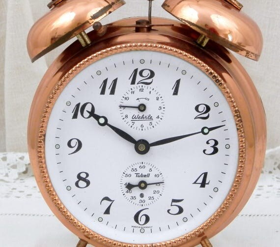 20% OFF coupon on Working Vintage Two Bell Copper Mid Century Wehrle Germany Mechanical Alarm Clock, Wind-up Clock, Retro, Home, Interior Design, Bedroom by VintageDecorFrancais