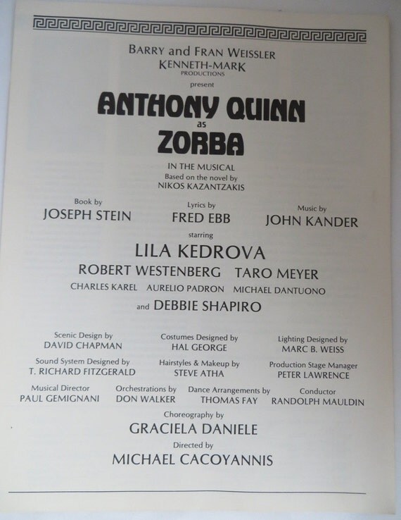 20% OFF coupon on Zorba the Greek Broadway Theater Program, 1983 Anthony Quinn, Vintage Collectible Broadway Program by LeesVintageJewels