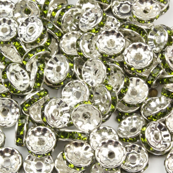 04 Olive Green Rondelle Spacer Beads Glass Crystal Swarovski Quality Rhinestones 6MM 8MM 10MM by PixelPiece
