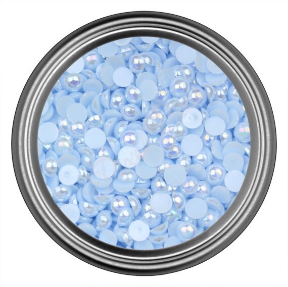 AB Blue Half Pearl Gems Flat Back Face Art Nail Art Scrapbook Phone Decoration Cabochon 2mm 3mm 4mm 5mm 6mm 8MM by PixelPiece