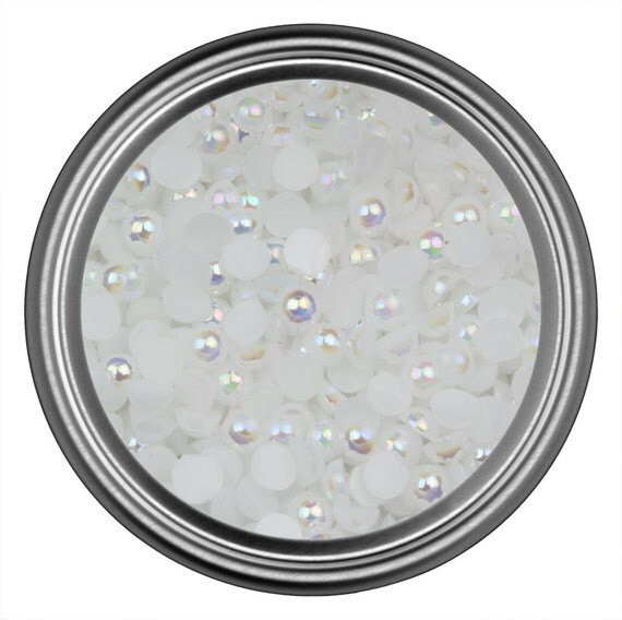 AB White Half Pearl Gems Flat Back Face Art Nail Art Scrapbook Phone Decoration Cabochon 2mm 3mm 4mm 5mm 6mm 8MM by PixelPiece
