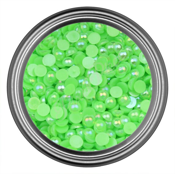 AB Green Half Pearl Gems Flat Back Face Art Nail Art Scrapbook Phone Decoration Cabochon 2mm 3mm 4mm 5mm 6mm 8MM by PixelPiece