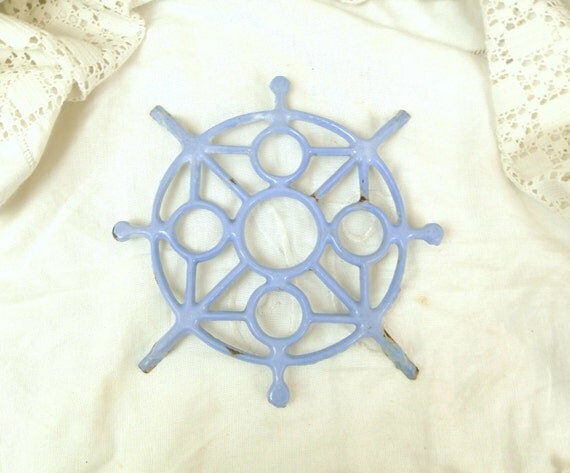 Vintage French Cast Iron Enameled Pale Blue Trivet / Heat Mat / Cottage Kitchenware / French Country Decor/ Retro Home Interior/ Kitchenalia by VintageDecorFrancais