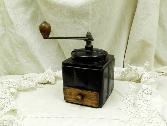 Vintage French Peugeot Fréres Black Painted Metal and Wooden Coffee Grinder / French Kitchenware Decor / Kitchenalia / Retro Vintage Home by VintageDecorFrancais