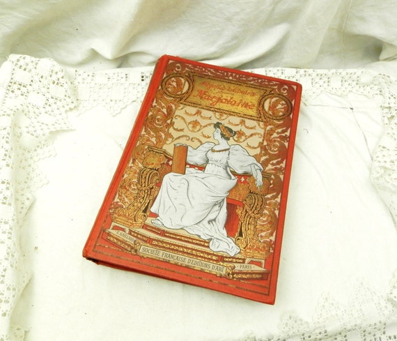 Antique French Book with an Ornate Art Nouveau Red and Gold Guilt Cover Marjolaine by D'argon de la Contrie / French Decor / Vintage Decor by VintageDecorFrancais