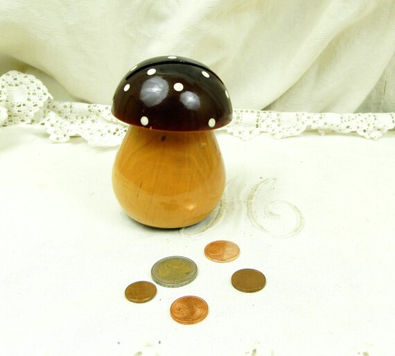 Vintage French Wooden Mushroom Shaped Money Box / Still Bank, Money Safe, Home Decor, Toy, Piggy Bank, Retro, Interior, Forest, Collecting by VintageDecorFrancais