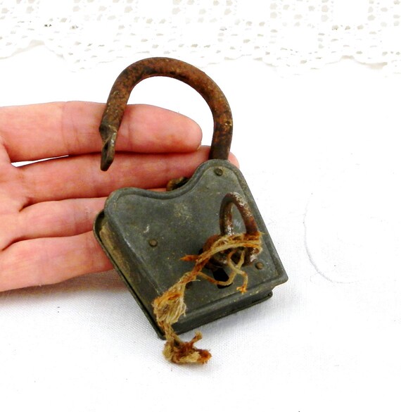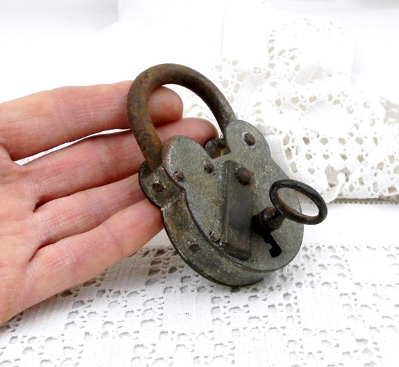 Large Unusual Antique Working French Padlock with 1 Working Key / Steampunk Decor / Industrial Decor / Retro Vintage Home Interior / Lock by VintageDecorFrancais