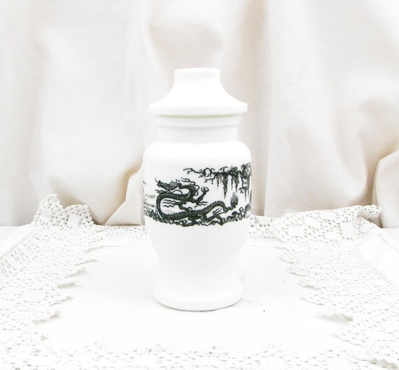 Vintage Milk Glass Apothecary Decorative Jar with a Chinese Dragon Scene / French Decor / French Shabby Chic / Retro Vintage Home Interior by VintageDecorFrancais