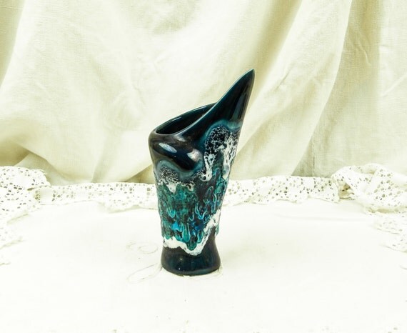 Vintage French Vallauris Dark Turquoise Blue and White Lava Vase Ecume de Mer / MidCentury / Retro Home Interior / European / Hipster /1960 by VintageDecorFrancais