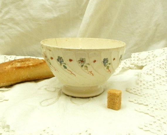 Antique Belgian Farmhouse Ceramic Café au Lait Bowl, Pottery Coffee Bowl from Europe, French Country Kitchenalia Decor, Shabby Cottage by VintageDecorFrancais
