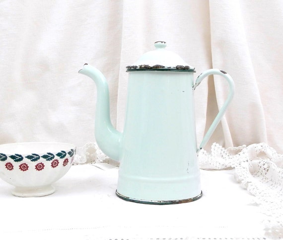 Antique French Pale Mint Green Enamelware Cafetière / Coffee Pot / French Decor / Country Decor / Vintage France Kitchenalia Home Interior by VintageDecorFrancais