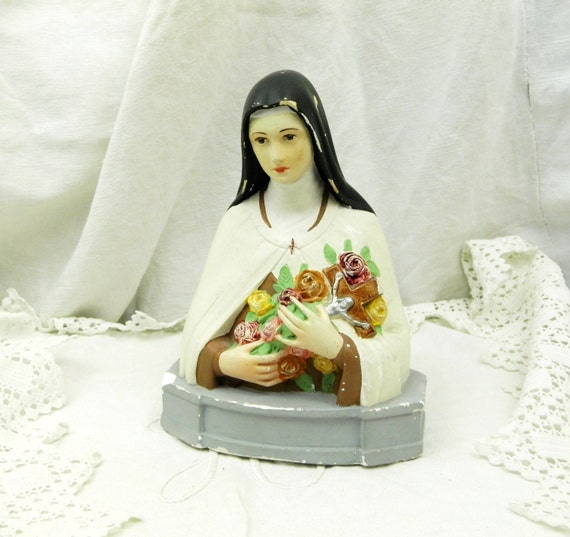 Vintage French Chippy Saint Therese de Lisieux Normandy Bust, Catholic St Theresa Plaster of Paris Statue, Religious Sculpture from France by VintageDecorFrancais