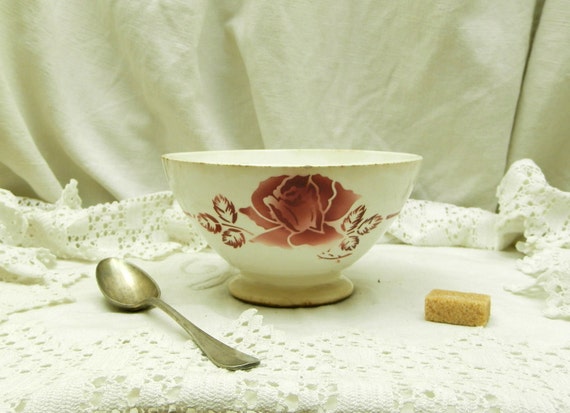 Vintage French Farmhouse Ceramic Digoin Café au Lait Bowl, French Country Cottage Coffee Bowl, Shabby Chateau Chic Kitchenware Decor by VintageDecorFrancais