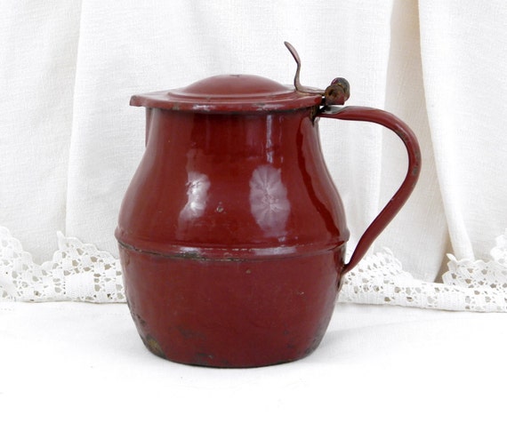 Excellent Condition Vintage French Red Enamelware Milk Pitcher / Jug 1.5 Liters / 0.4 Gallon, French Country Decor, Kitchenelia/ Kitchenware by VintageDecorFrancais