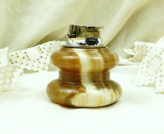 Vintage French Working Mid Century Onyx Stone Table Cigarette Lighter / Semi Precious Stone / Retro Home Interior French Decor / 1950 / 1960 by VintageDecorFrancais