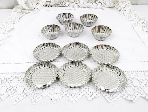 Unused 6 Vintage French Tartlet Metal Pans and 5 Cup Cake Molds, French Country Baking, Retro Kitchen, Rustic French Traditional Baking by VintageDecorFrancais