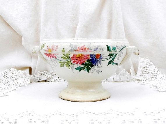 Antique French Hand Painted Flower Pattern Ceramic Pottery Soup Serving Bowl Saint Amand Des Eaux, French Country Decor, Chateau Chic, Retro by VintageDecorFrancais
