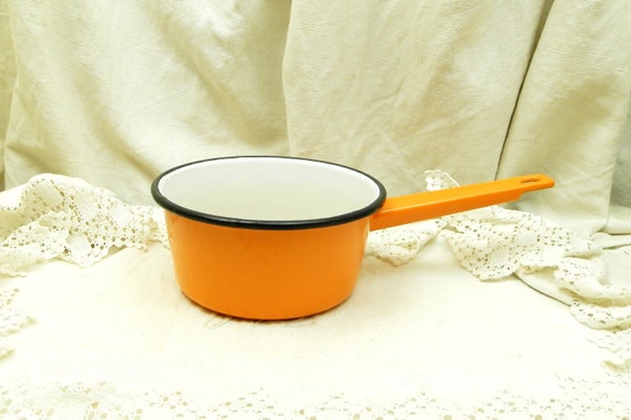 Vintage French Simple Medium Sized Orange Cooking Pan / Cooking Pot / French Country Decor / Retro Cooking / 1960s Kitchenalia / Retro Home by VintageDecorFrancais