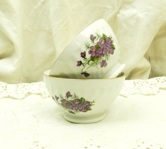 2 Small Vintage Bone China Ceramic Café au Lait Bowl / French Country Decor/ French Vintage/ Coffee Bowl/ Shabby Chic/ French Decor / Retro by VintageDecorFrancais