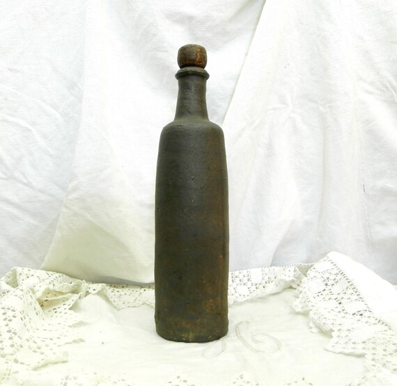 Antique French Stoneware Ceramic Rustic Primitive Cider Bottle, Pottery Vase from Normandy France, Calvados Container, Brocante Decor by VintageDecorFrancais