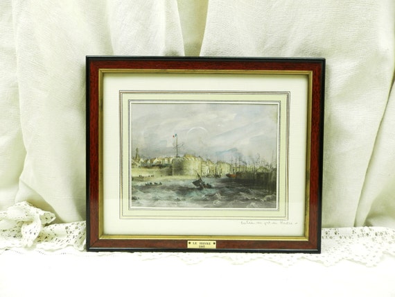 REDUCED TO CLEAR Vintage Framed Watercolor Print of the Port of Le Havre in 1845 / French Picture / Normandy / Artist / Retro Home / Decor by VintageDecorFrancais