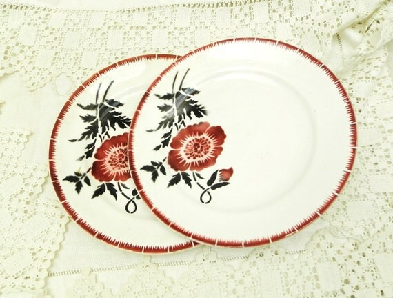 2 Antique Ironware Porcelain Desert Plate with Poppy Floral Motif / Shabby / Cottage / Chateau Chic / Vintage Home Interior / French Decor by VintageDecorFrancais