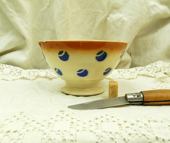 Chippy Antique Farmhouse Ceramic K et G Luneville Café au Lait Bowl / Vintage French Country Decor Coffee Bowl, Country Farmhouse Decor by VintageDecorFrancais