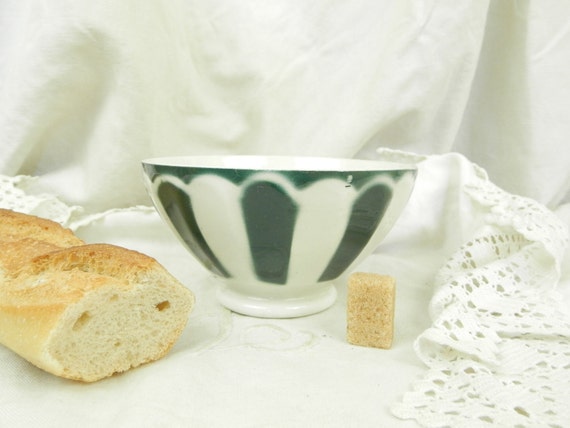 Antique French Farmhouse Dark Green and White Coffe Bowl Café au Lait Bowl / French Country Decor / Retro Vintage Home Interior / Kichenalia by VintageDecorFrancais