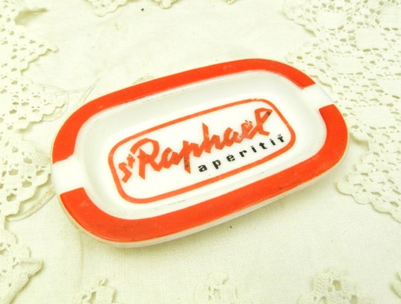 Vintage French Mid Century Milk Glass St Raphael Promotional Aperitif Ashtray, Bistro Café Bar Ware Decor, Smoking Collectibles Tobacciana by VintageDecorFrancais