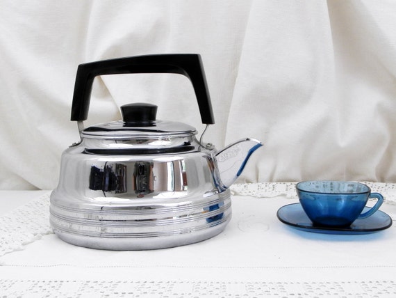 Large Vintage French Mid Century Chromed Metal Kettle with Bakelite Handle, French Country Decor, Retro Home Interior, Kitchenware, Coffee, by VintageDecorFrancais