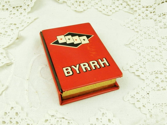 Vintage Promotional Metal Playing Card Tin by French Aperitif Drinks Company Byrrh, Advertising Red Box for Pack of Cards from France by VintageDecorFrancais