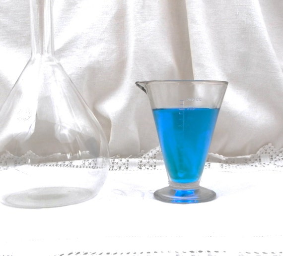 Vintage Graduated Chemistry Measuring Pouring Glass Beaker, Industrial Decor, French Chemist Laboratory Brocante, Retro Vintage Home Style by VintageDecorFrancais