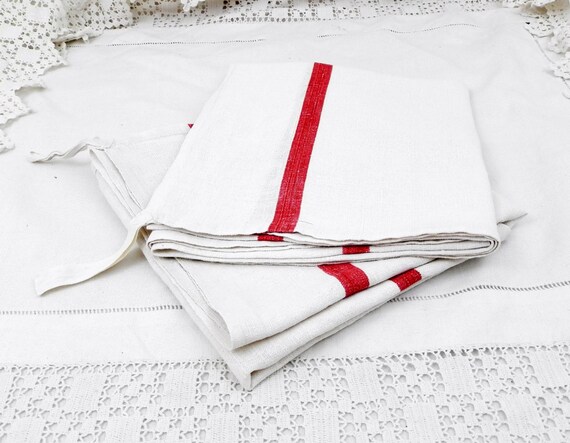 Set 2 Large Antique French Cotton Tea Towels with Woven Red Stripes Hanging Loop, French Country, Kitchen Decor, Provencal, French Decor by VintageDecorFrancais