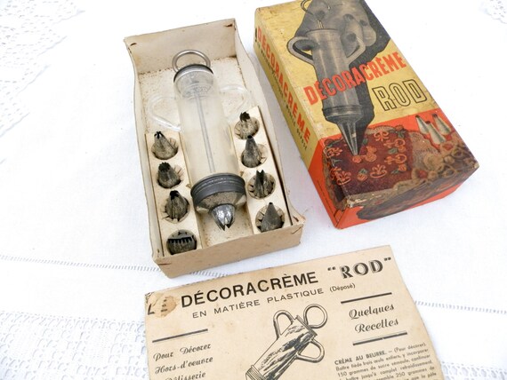 Vintage French Complete Boxed Set Piping Icing Funnel / Syringe with 8 Tips, Kichenalia, 1960s, 1950s, Retro, Kitchenware, Cake, Kitchen by VintageDecorFrancais