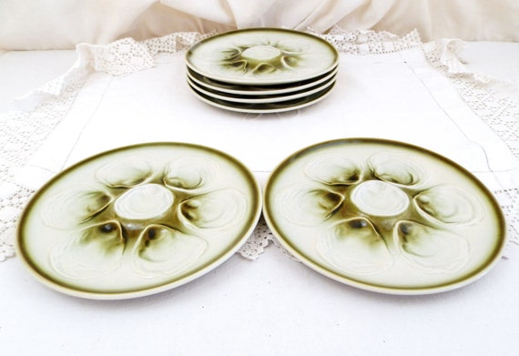 2 Vintage French Green and White Oyster Plates by St Armand / Seafood Tableware, French Dining, Retro Vintage French Interior, Mid Century by VintageDecorFrancais