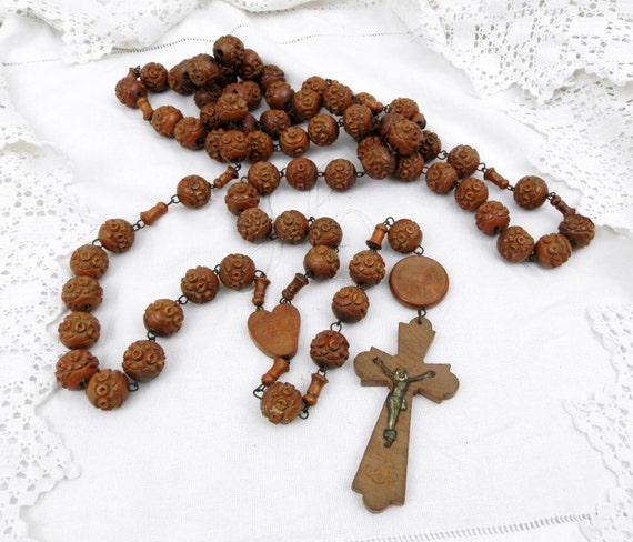 Antique Religious French Large and Long Rose Wood Rosary Carved Beads, French Decor, French, Vintage, Religion, Catholic Crucifix Jesus by VintageDecorFrancais