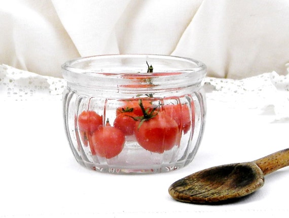 Antique French Thick Glass Traditional Unusual Faceted Glass Jam Jar, French Country Decor, Shabby Chic, Chateau Decor, Kitchen, Jelly Pot by VintageDecorFrancais