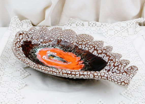 Large Vintage French Vallauris Lava Glaze Ceramic Fruit Bowl Ecume de Mer / MidCentury / Retro Home Interior / Hipster 1960 Orange White by VintageDecorFrancais