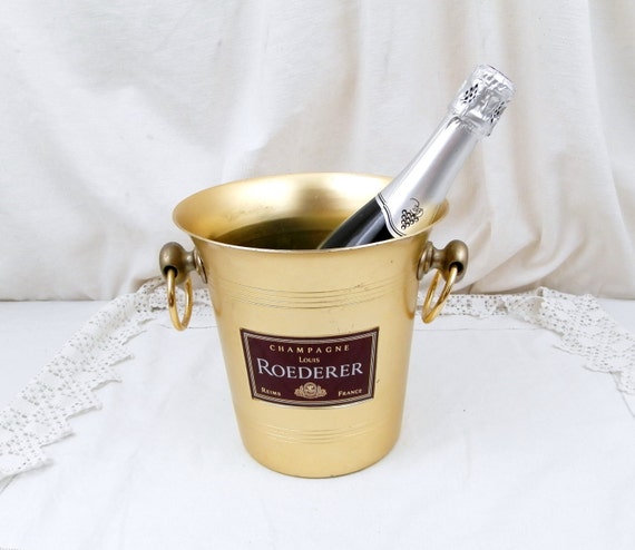 Vintage French Champagne Anodized Ice Bucket / Cooler Louis Roederer 2 Handles, Chic Decor, Celebration, Champagne, Chateau, Reims, France by VintageDecorFrancais