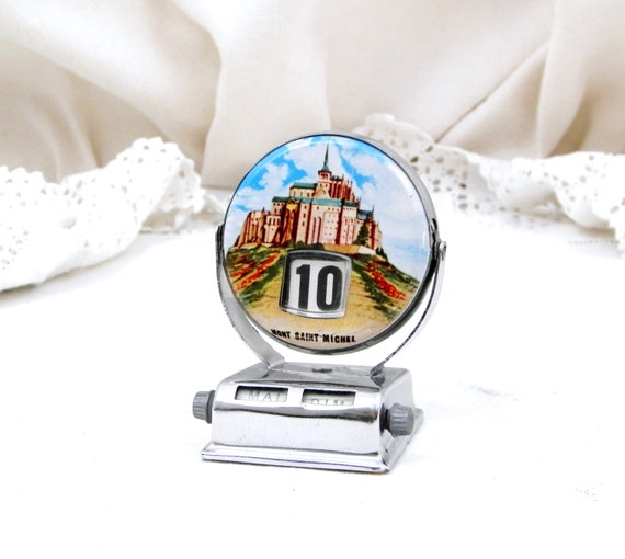 Vintage French Mid Century Round Perpetual Calendar with Le Mont Saint Michel / Saint Michael's Mount Normandy, Office Decor, Retro Decor by VintageDecorFrancais