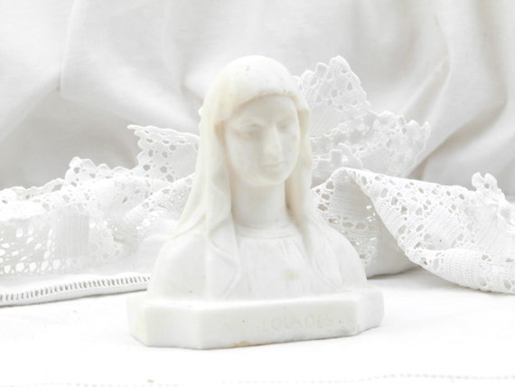 Small Antique Carved Alabaster and Marble Bust of the Virgin Mary Signed Maillard, Catholic, Religious Sculpture, Our Lady, Statue, Religion by VintageDecorFrancais