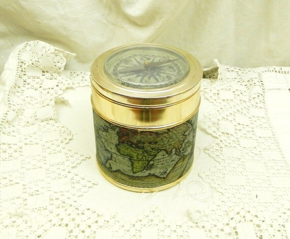 Vintage French Mid Century Ice Bucket and Lid with a Medieval Map of the World and a Compass on the Lid / Mid Century Decor / Retro Interior by VintageDecorFrancais