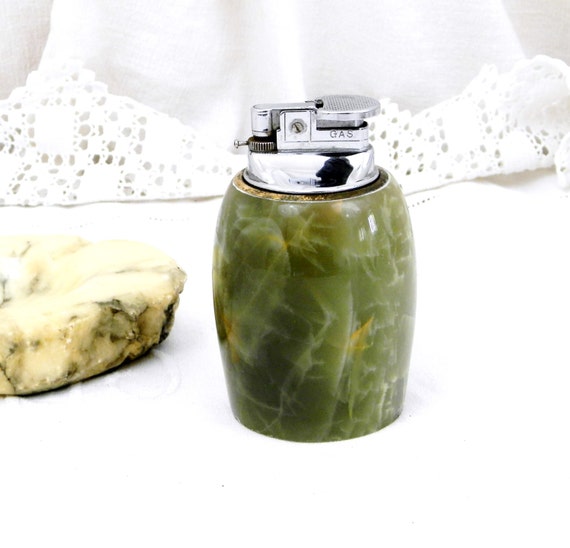 Vintage French Working Mid Century Green Onyx Stone Table Cigarette Lighter, Semi Precious Stone, Retro Home Interior, Man Cave Tobacciana by VintageDecorFrancais