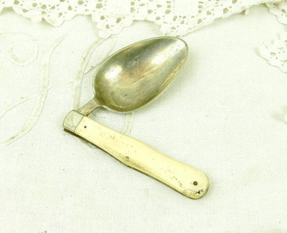 Antique French Folding Metal Traveling Spoon With Bone Handle, Vintage Camping Hunting, Steampunk Scouts Glamping Camp Cutlery Equipment, by VintageDecorFrancais
