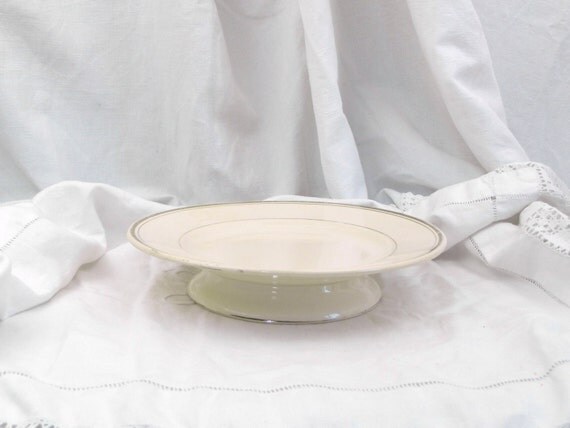 Antique French Porcelain Cake Stand Pale Cream with Gold Rim / French Country Decor / Chateau Chic / Retro Vintage Home Interior / Shabby by VintageDecorFrancais