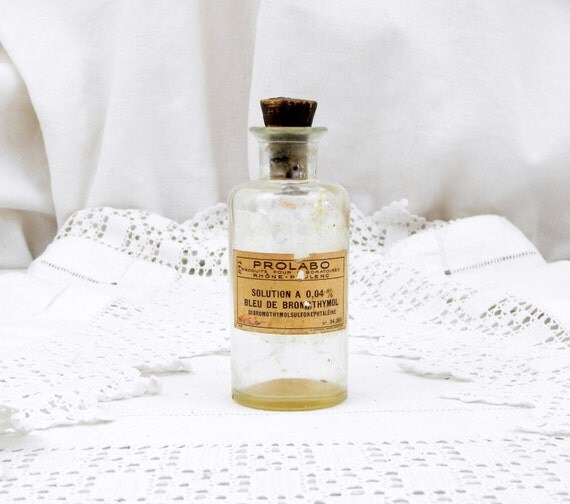 Small Antique French Glass "Bleu de Bromothymol " Bottle with a Cork Stopper, French Country Decor, Bromothymol Blue, Apothecary, Chemist by VintageDecorFrancais